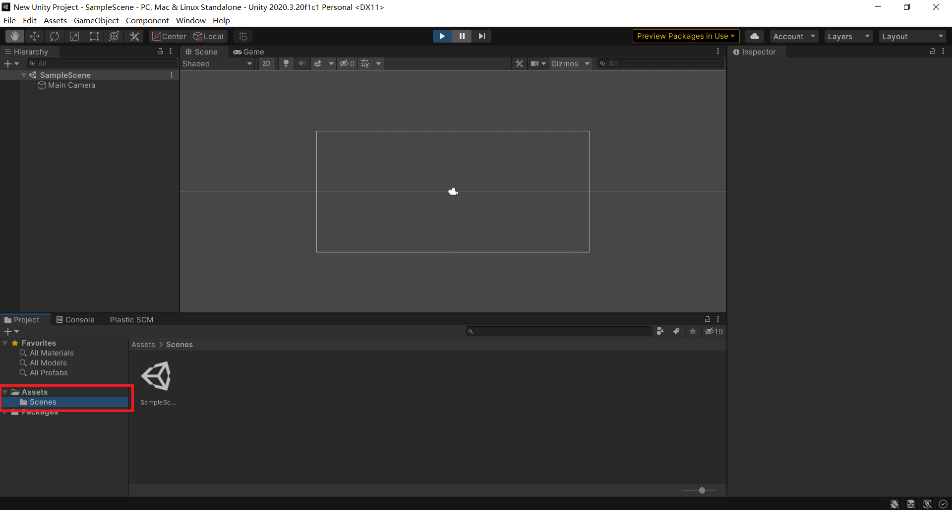如果想要创建新场景,可以在Assets文件夹里面添加
