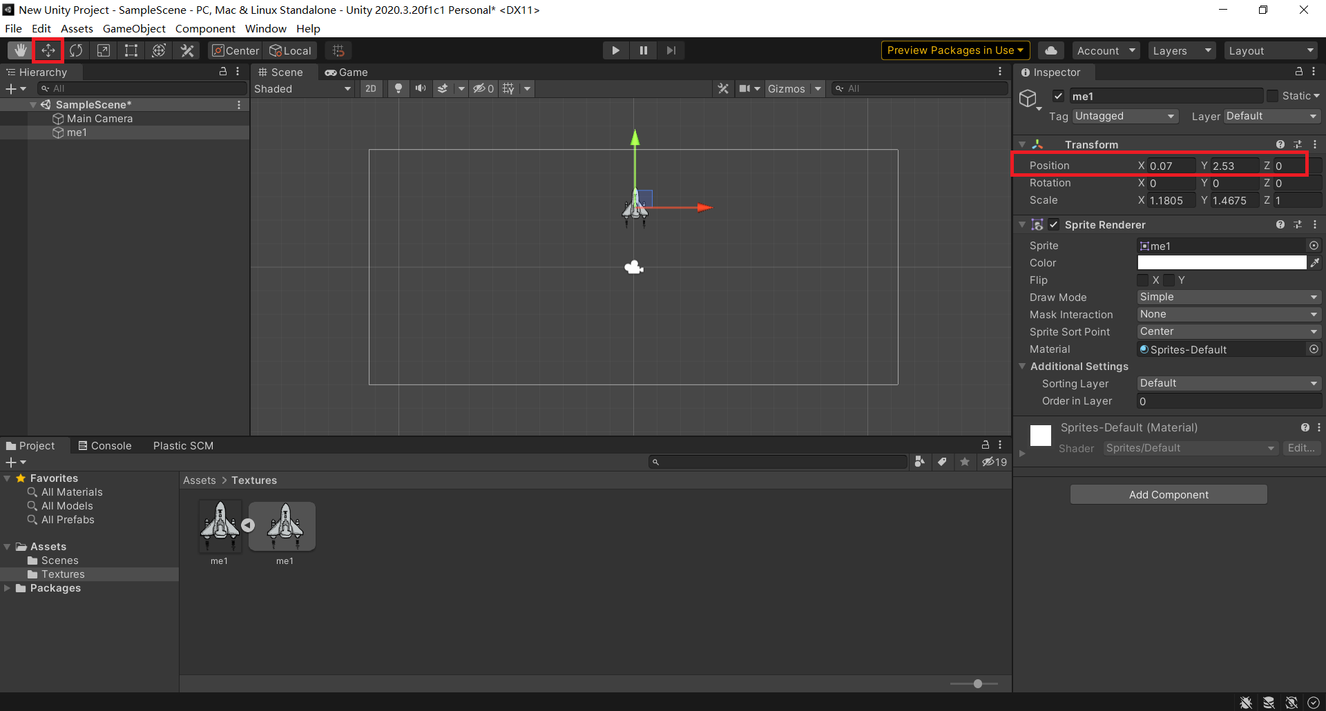 拖动红轴仅进行水平移动,拖动绿轴仅进行垂直移动,修改position可以精确修改其坐标