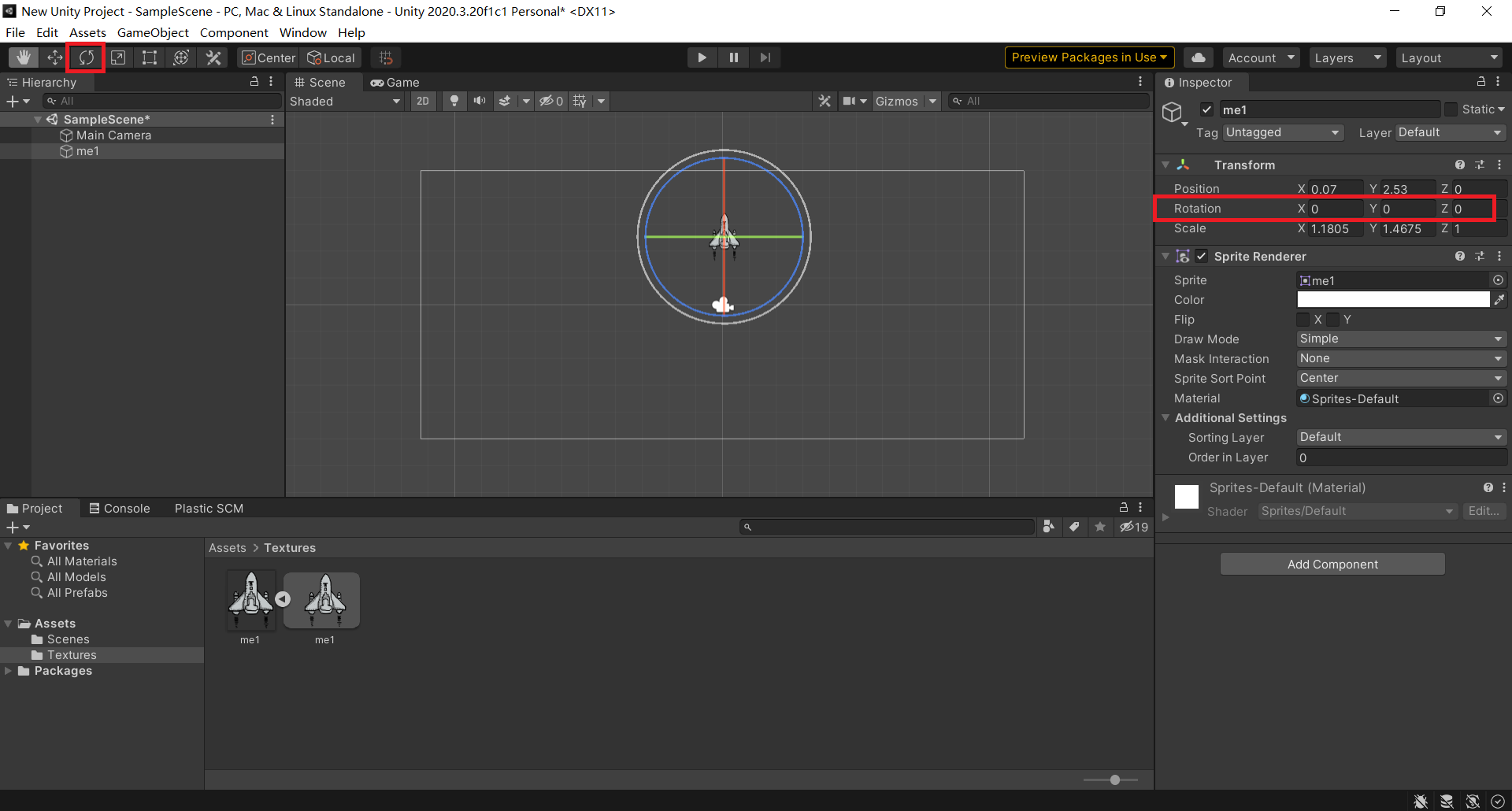 红绿蓝三个环分别代表沿着xyz三个轴进行旋转,可以修改Rotation来精确控制