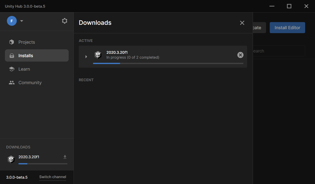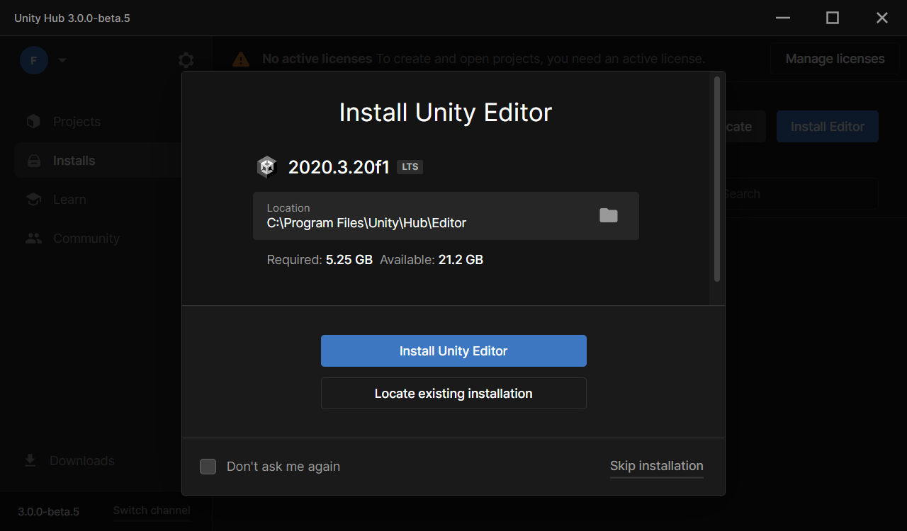 还是装好了Unityhub,这次的安装包和上次的不同,少了个beta