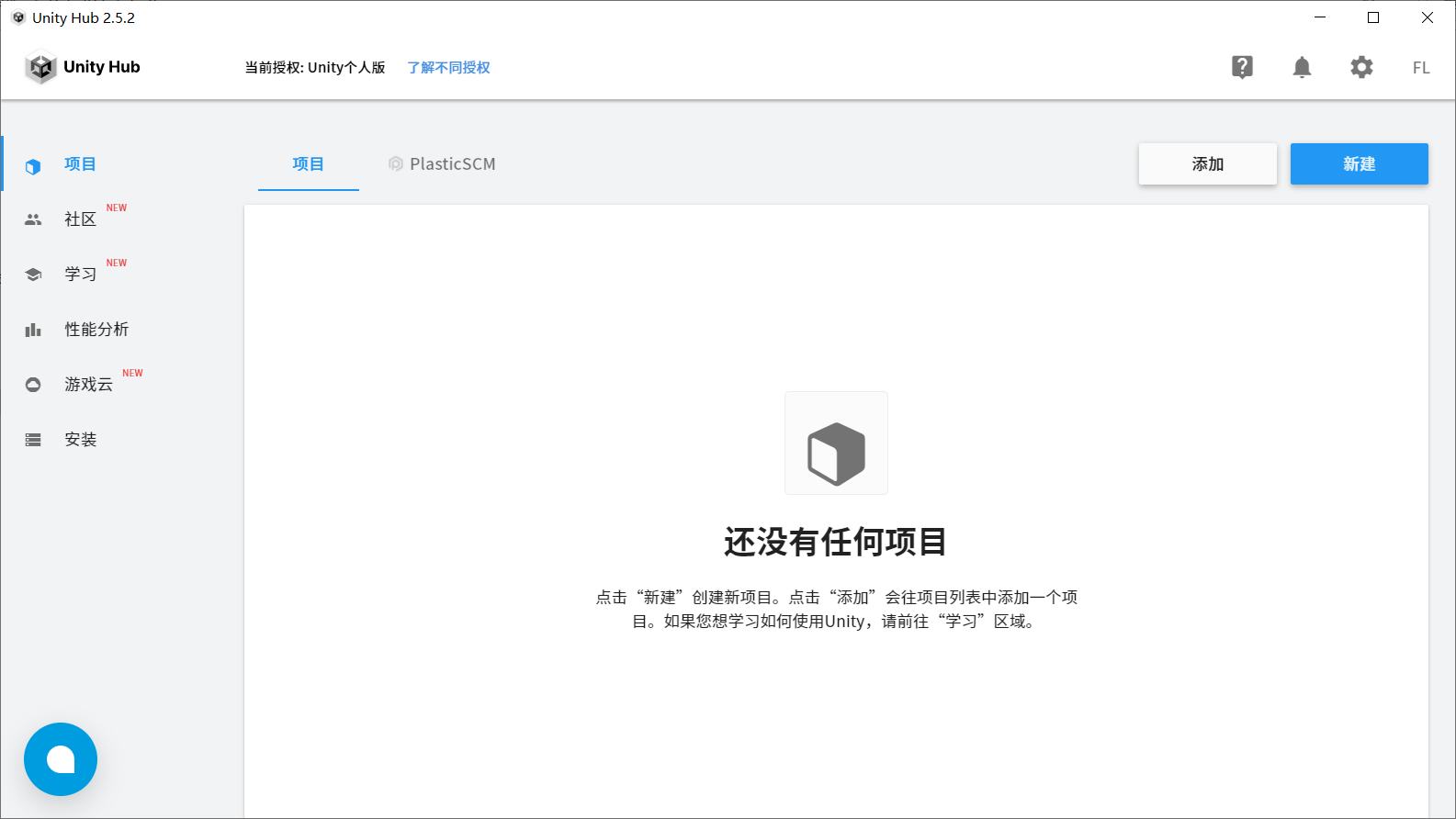 找了个网课看,但网课上的版本我不知道是几几年的了,所以我直接下载了Unity推荐的版本,希望不会有坑吧